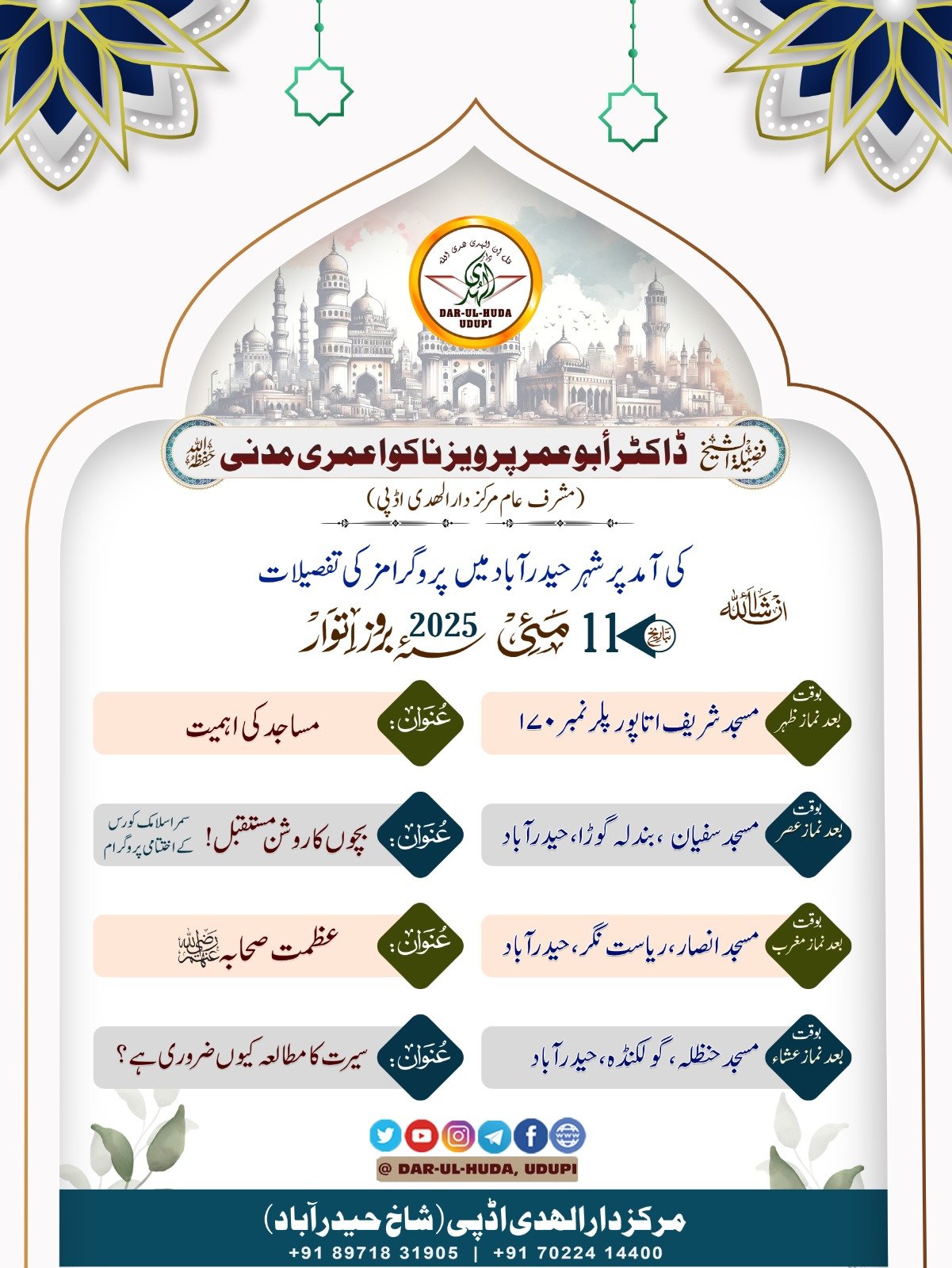 دارالہدیٰ کے آنے والے پروگراموں سے باخبر رہیں، جن میں دینی اجتماعات، تعلیمی پروگرام، سماجی خدمات اور خصوصی اقدامات شامل ہیں۔