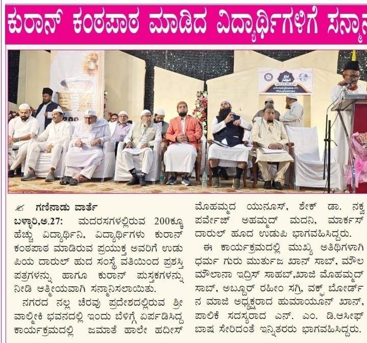 Latest newspaper articles and media mentions featuring Darul Huda Udupi.